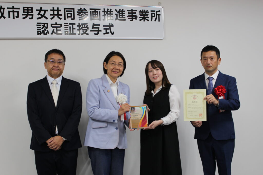 この度、2025年10月1日に「令和7年度 倉敷市男女共同参画推進事業所」に認定されました!